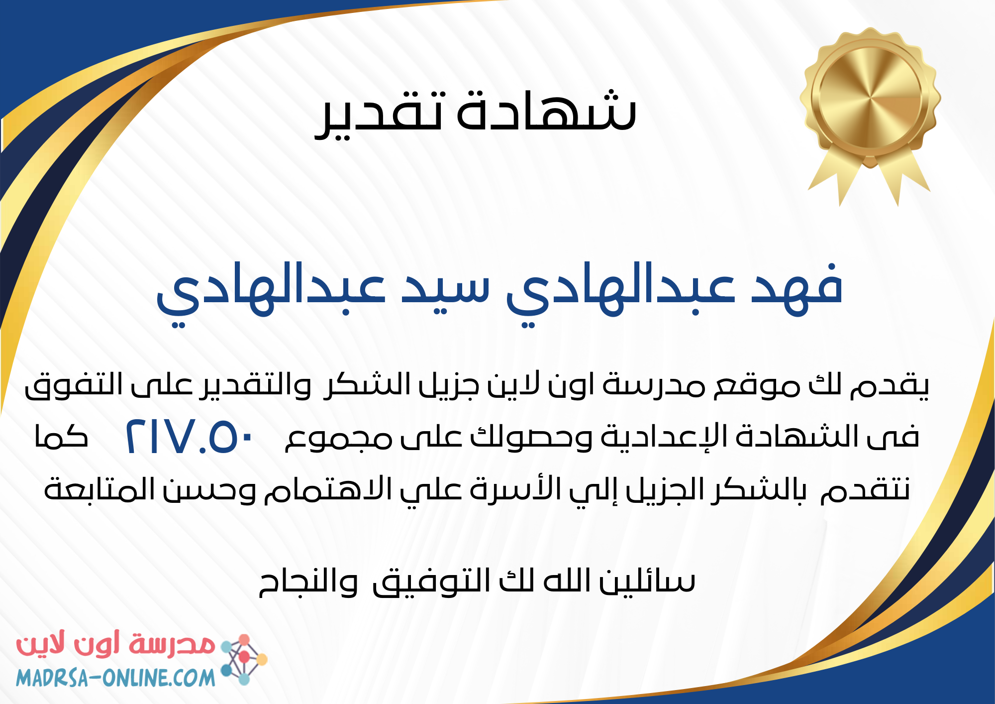 | اسم الطالب | فهد عبدالهادي سيد عبدالهادي | |