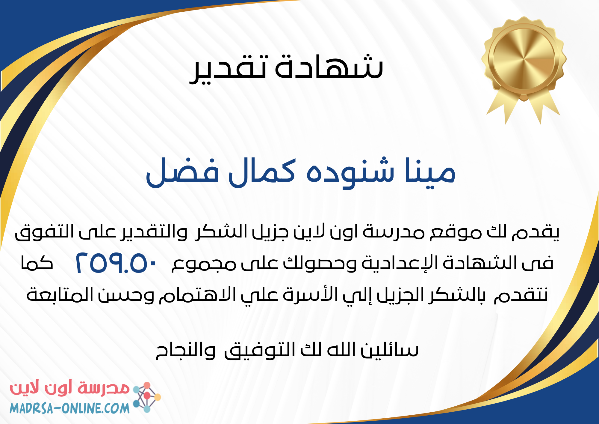 مرحبا بك في مدرسة اون لاين موقع متخصص في الإعلان عن نتيجة الشهادة الإعدادية حيث نقوم بنشر نتائج جميع المحافظات ويتم الاستعلام عنها بالاسم فقط او رقم الجلوس كما يمكن معرفة درجاتك في جميع المواد والمجموع والنسبة المئوية وترتيبك وتحميل شهادة تقدير والعديد من الخدمات الأخري المميزة من مدرسة اون لاين.