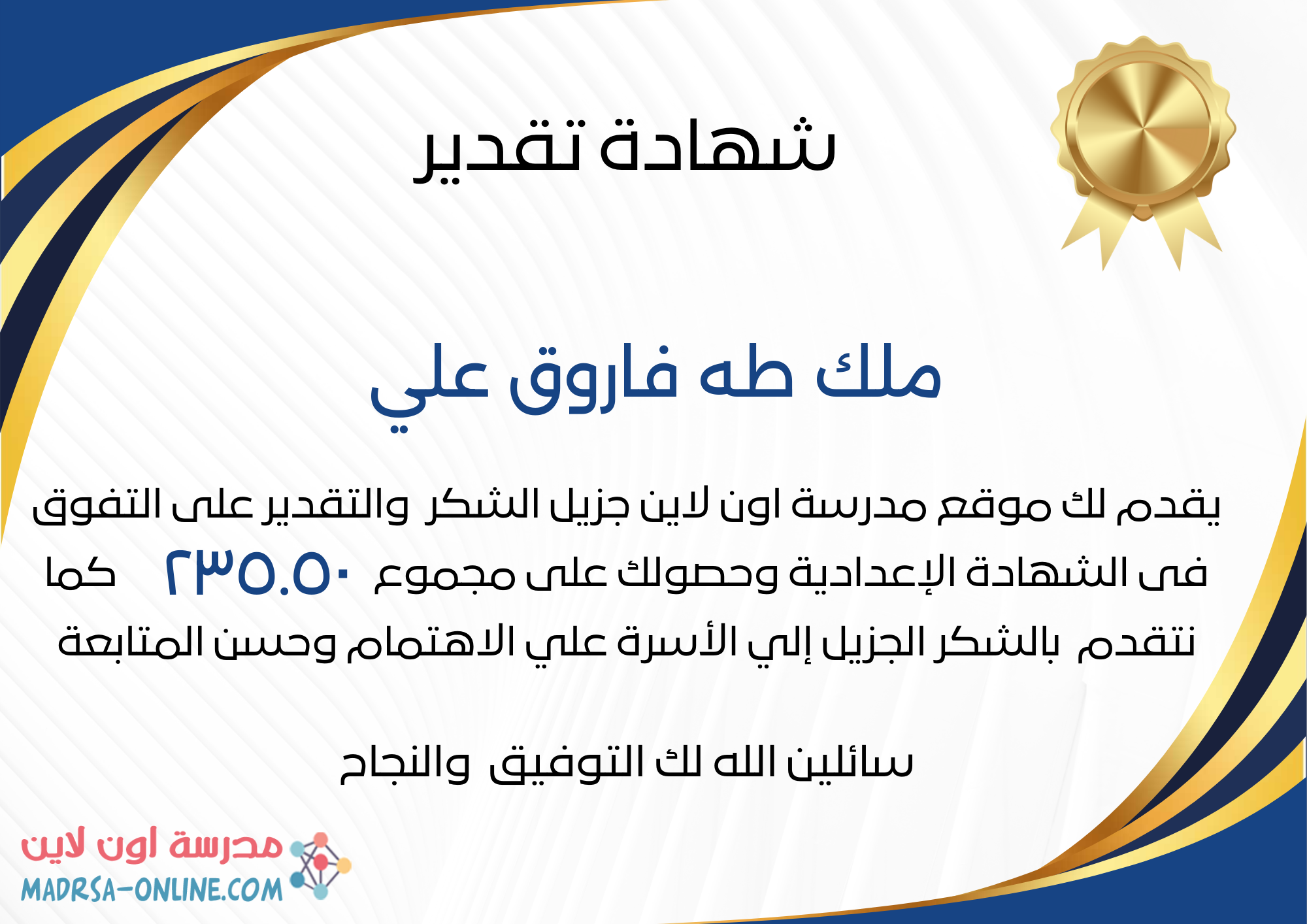 | اسم الطالب | ملك طه فاروق علي | |