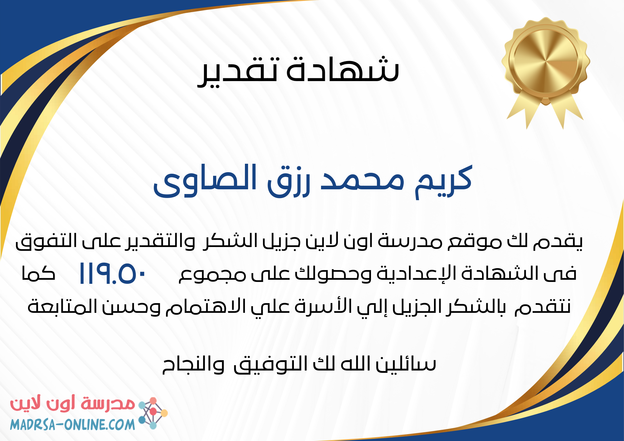 | اسم الطالب | كريم محمد رزق الصاوى | |