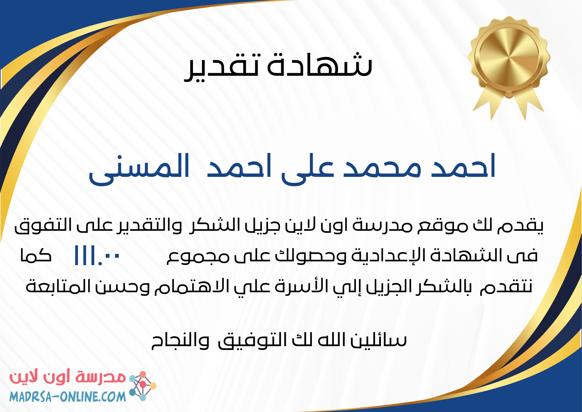 | اسم الطالب | احمد محمد على احمد المسنى | |