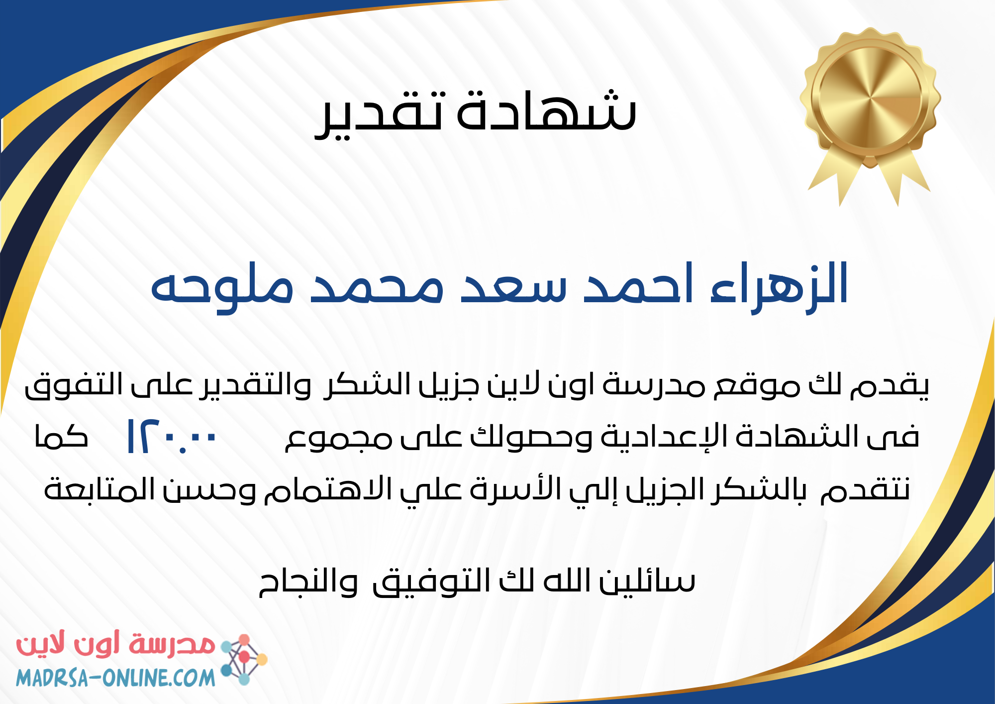 | اسم الطالب | الزهراء احمد سعد محمد ملوحه | |