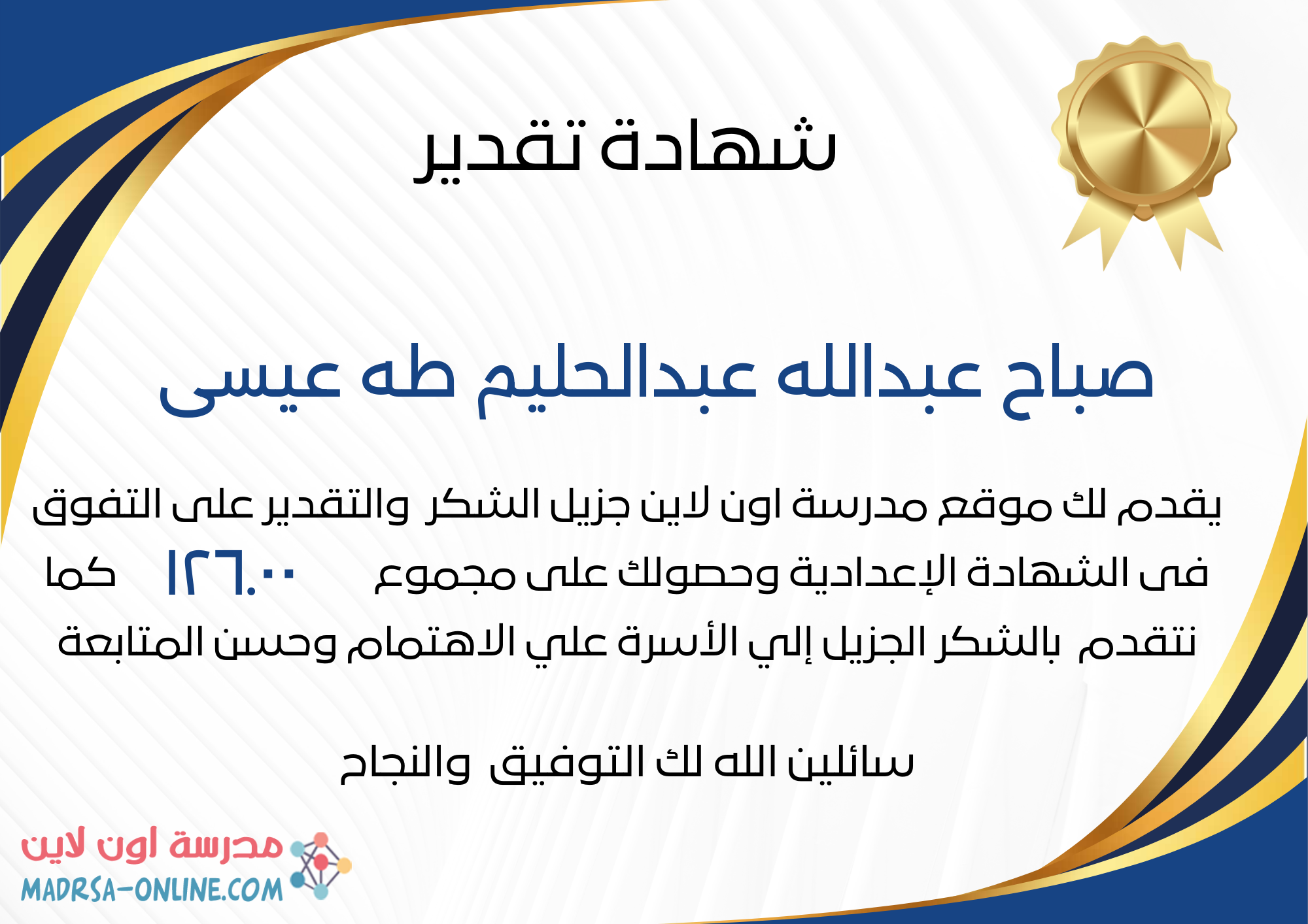 | اسم الطالب | صباح عبدالله عبدالحليم طه عيسى | |