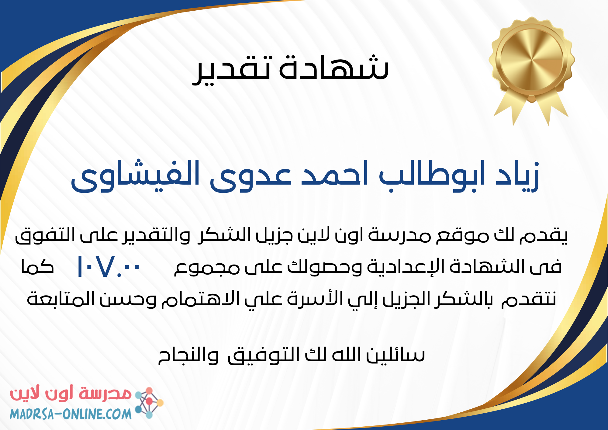 | اسم الطالب | زياد ابوطالب احمد عدوى الفيشاوى | |