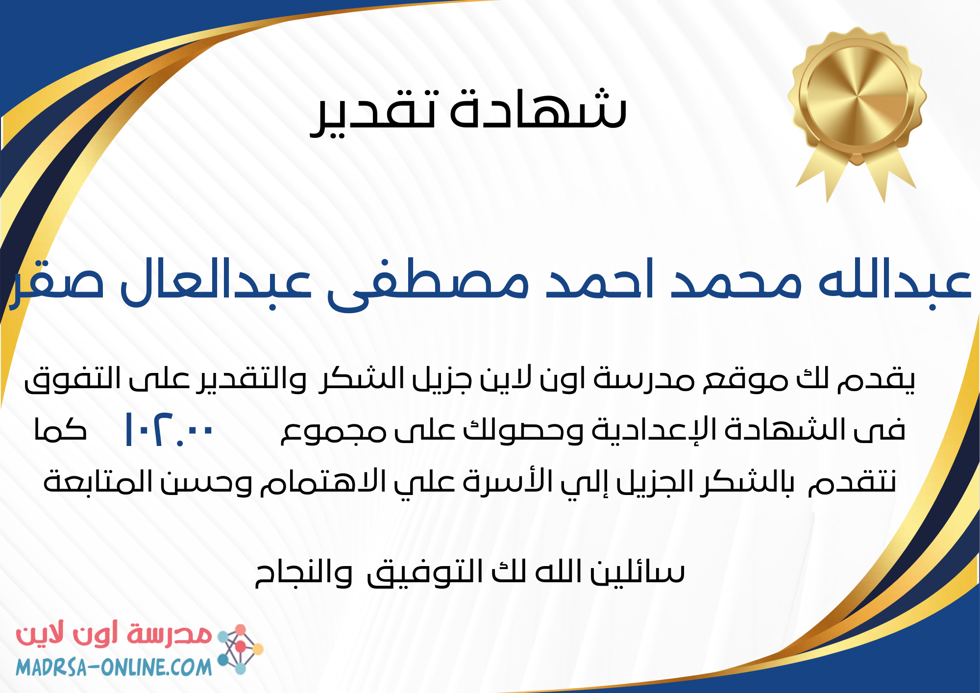 | اسم الطالب | عبدالله محمد احمد مصطفى عبدالعال صقر | |