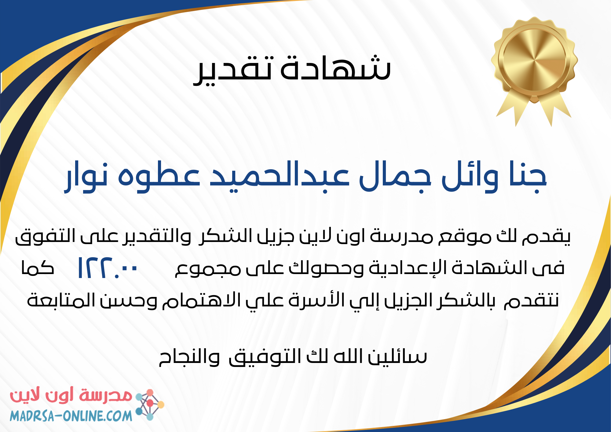 | اسم الطالب | جنا وائل جمال عبدالحميد عطوه نوار | |
