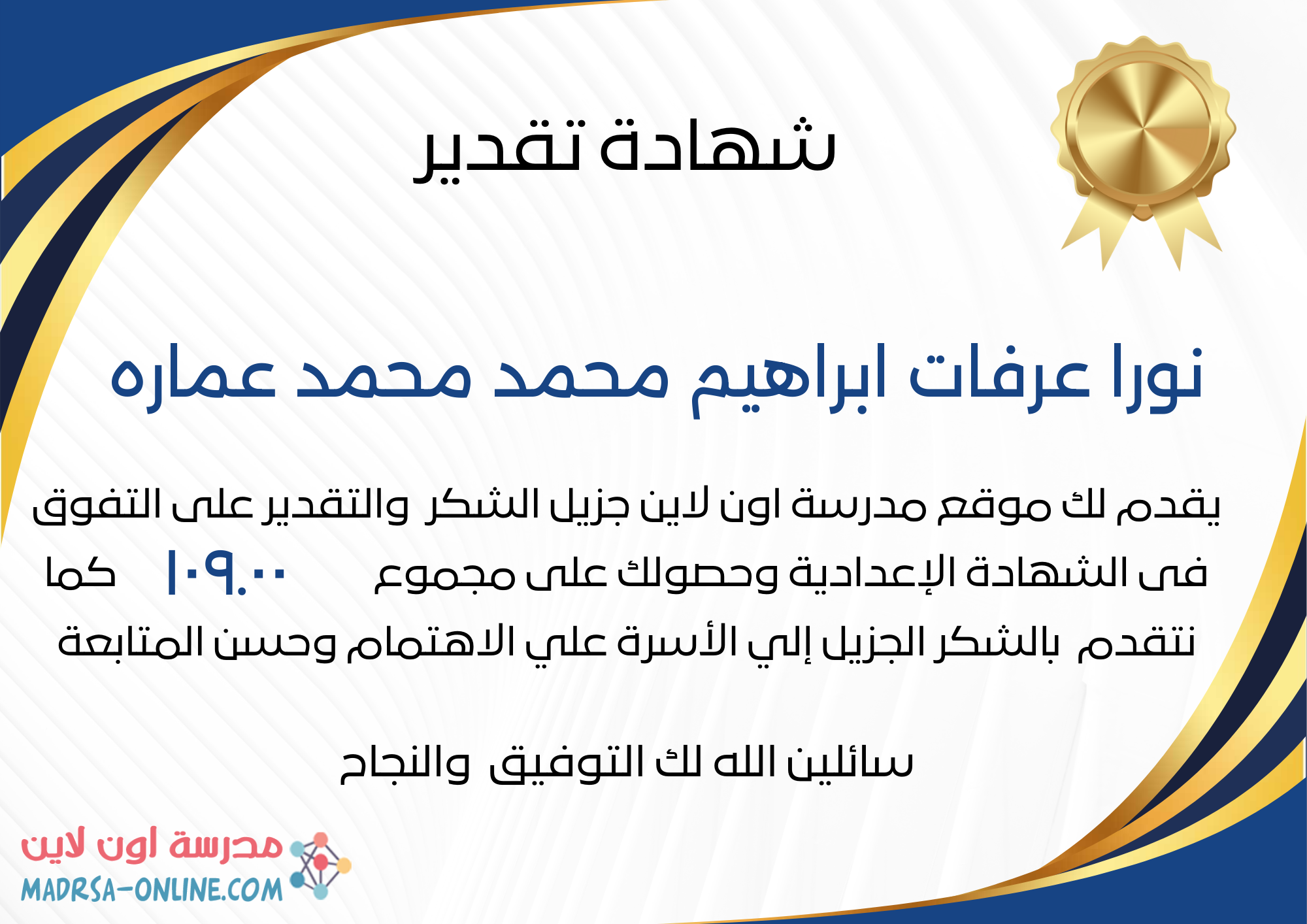 | اسم الطالب | نورا عرفات ابراهيم محمد محمد عماره | |