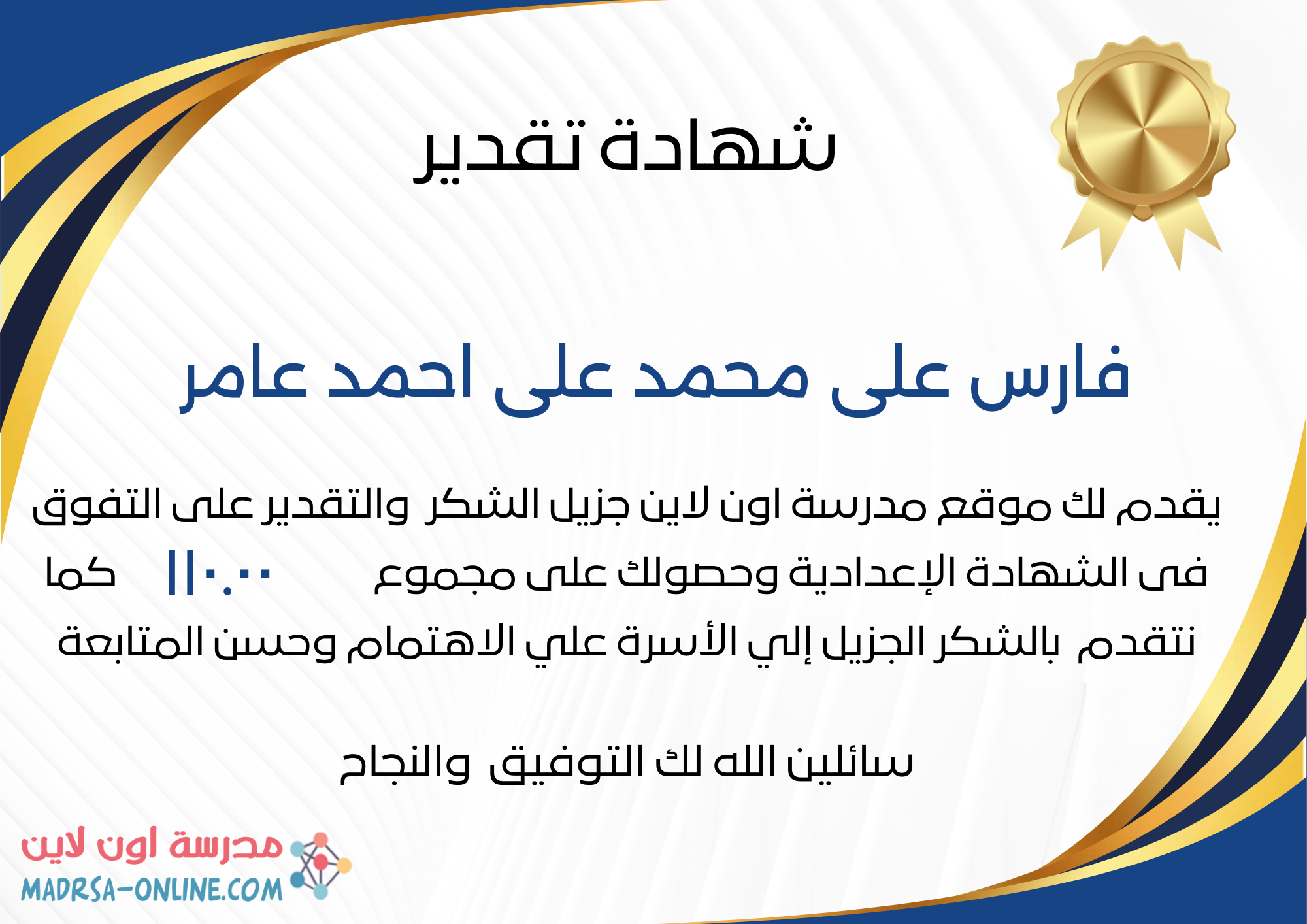 | اسم الطالب | فارس على محمد على احمد عامر | |