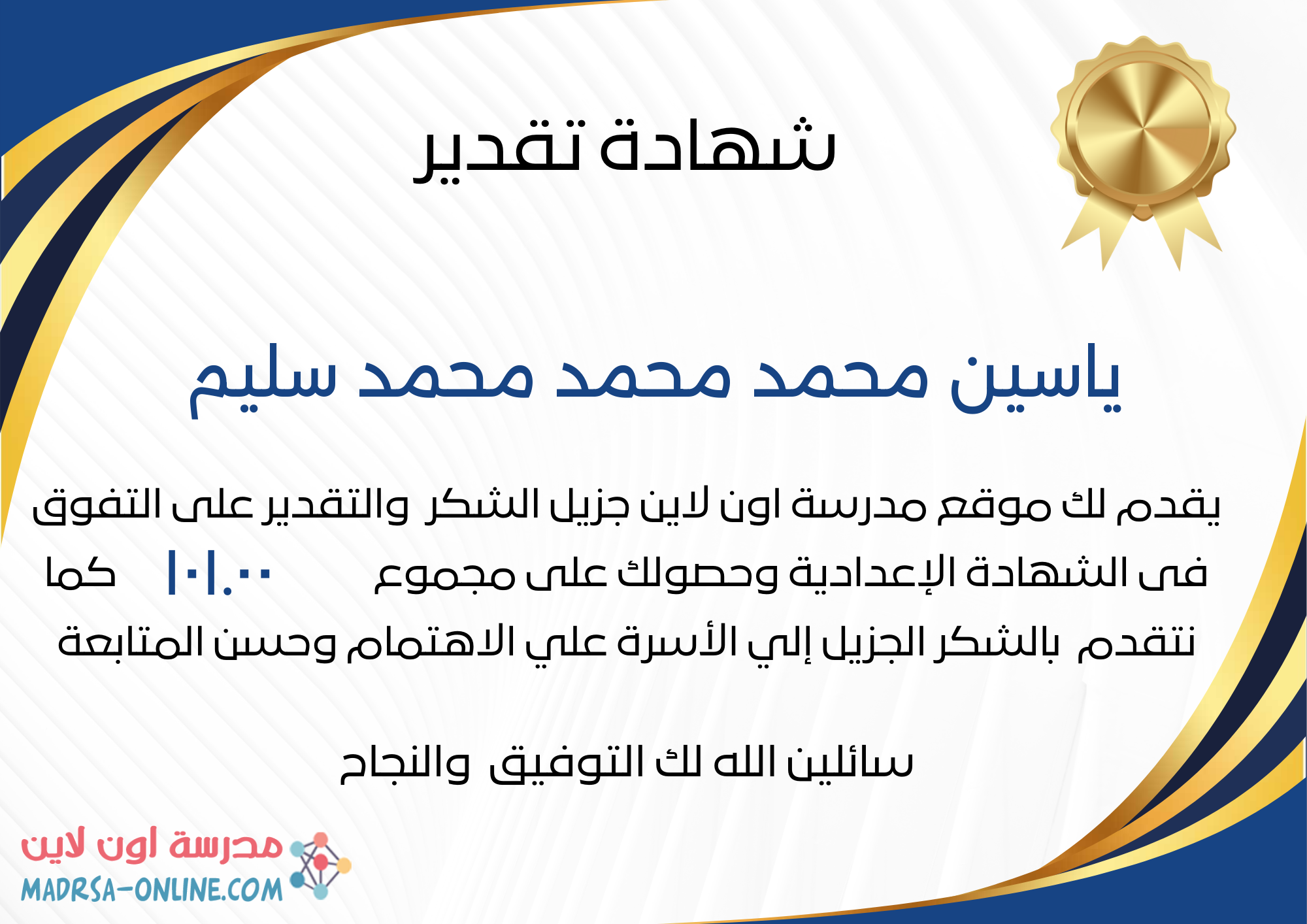 | اسم الطالب | ياسين محمد محمد محمد سليم | |