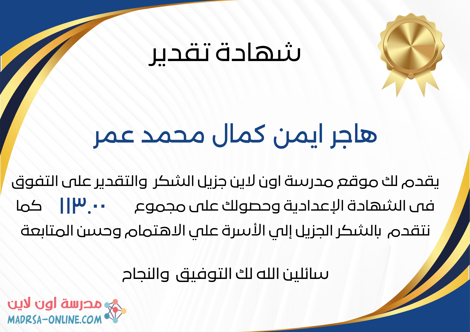 | اسم الطالب | هاجر ايمن كمال محمد عمر | |