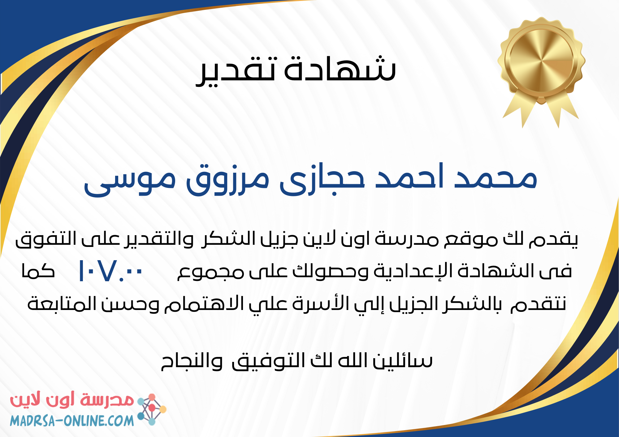 | اسم الطالب | محمد احمد حجازى مرزوق موسى | |