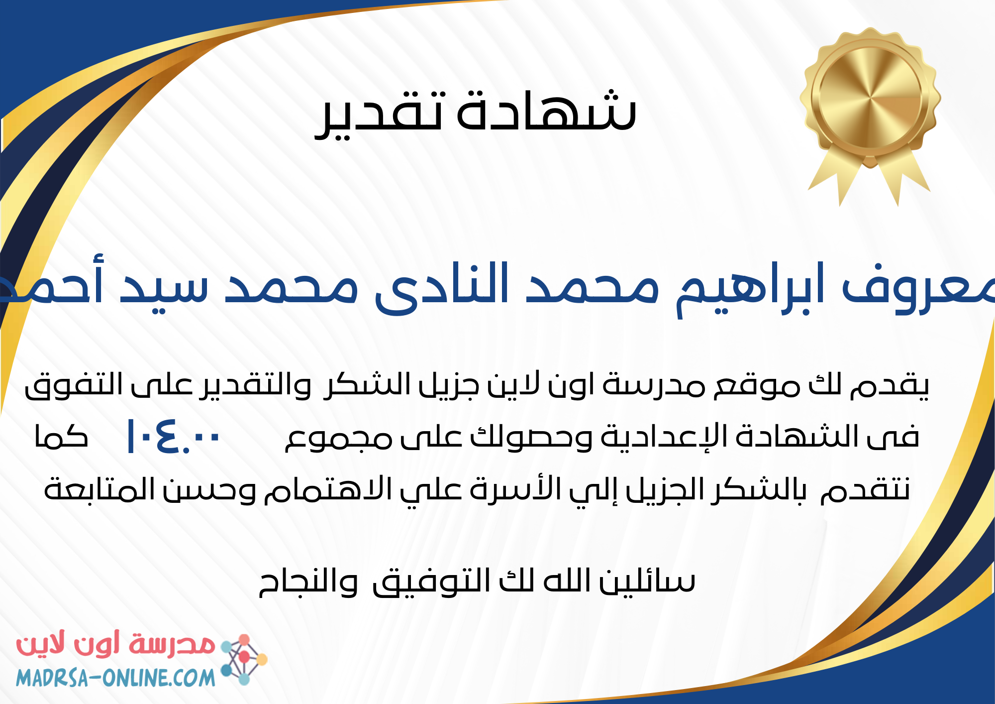 | اسم الطالب | معروف ابراهيم محمد النادى محمد سيد أحمد | |