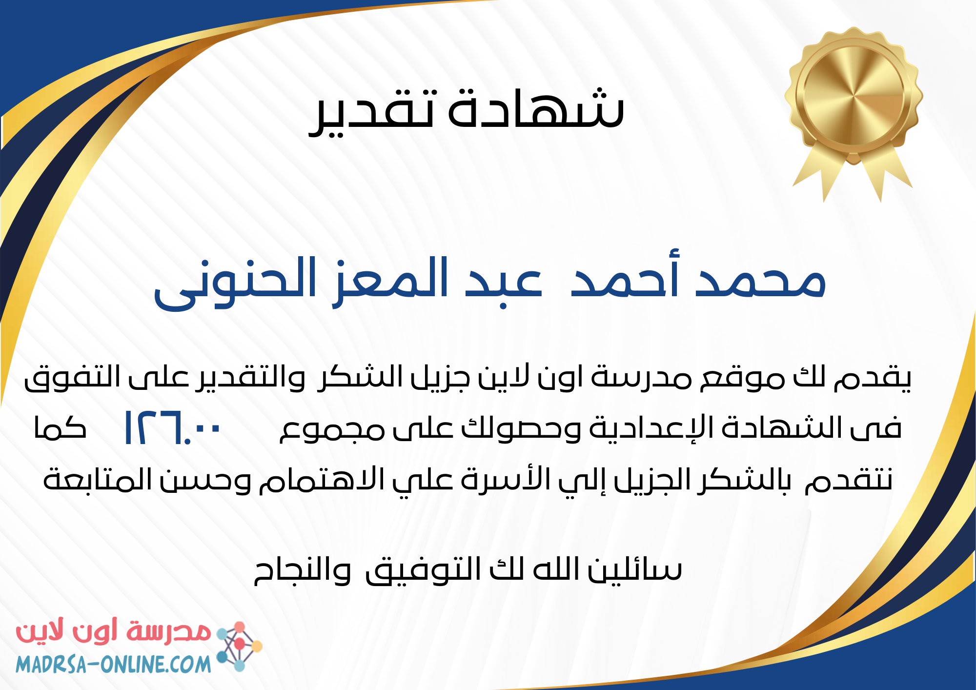 | اسم الطالب | محمد أحمد عبد المعز الحنونى | |