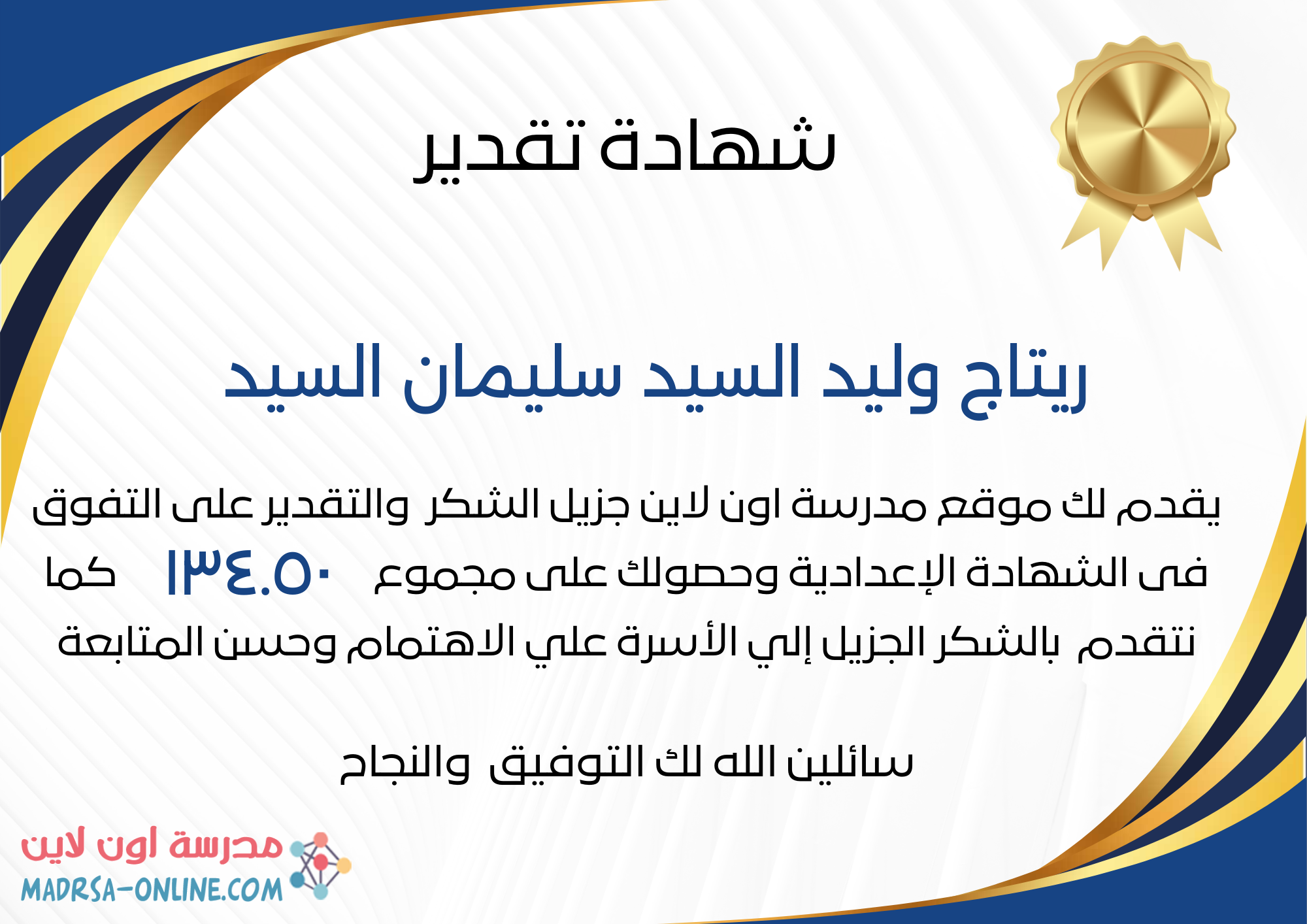 | اسم الطالب | ريتاج وليد السيد سليمان السيد | |