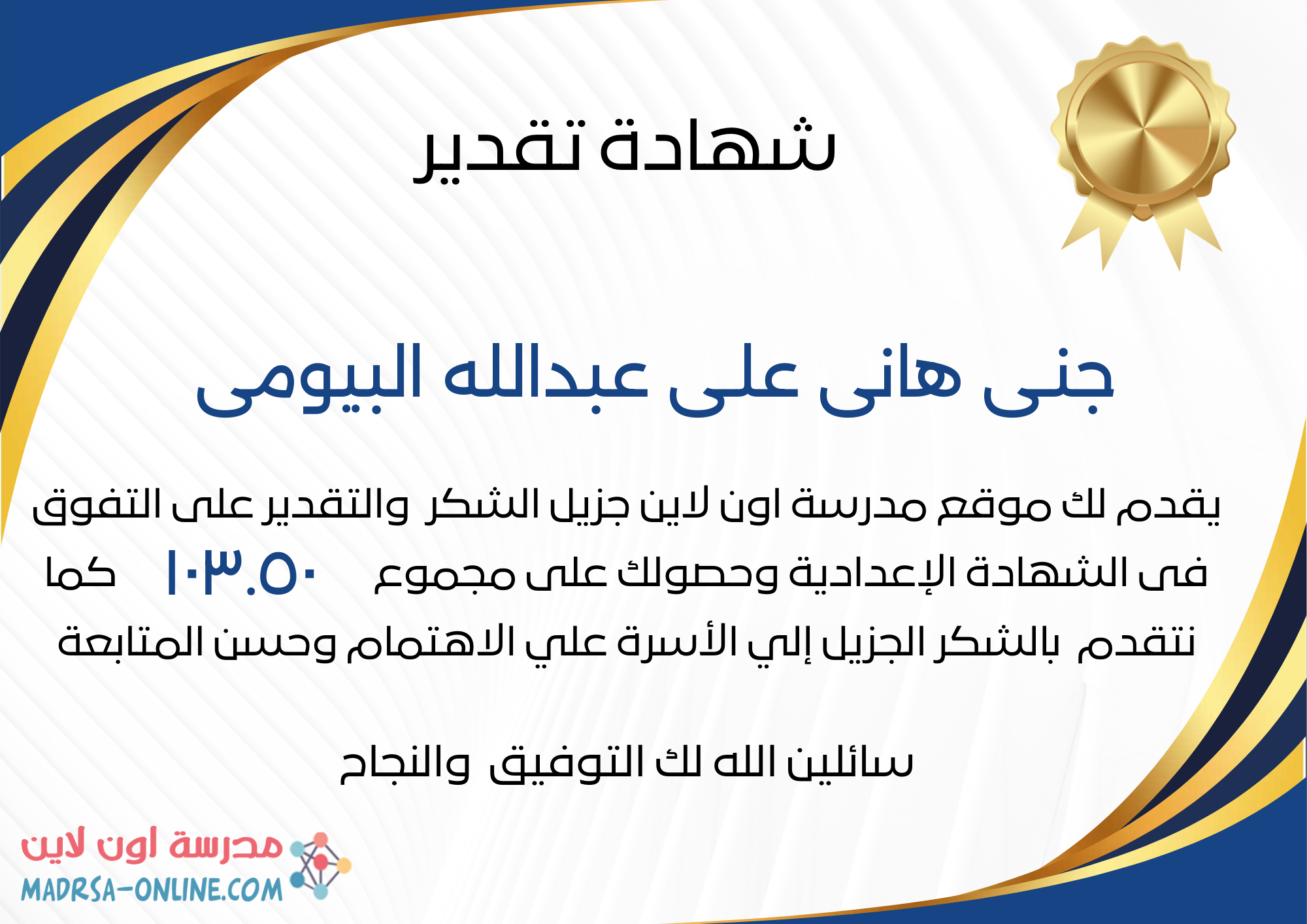 | لقد حصلت علي شهادة تقدير |
