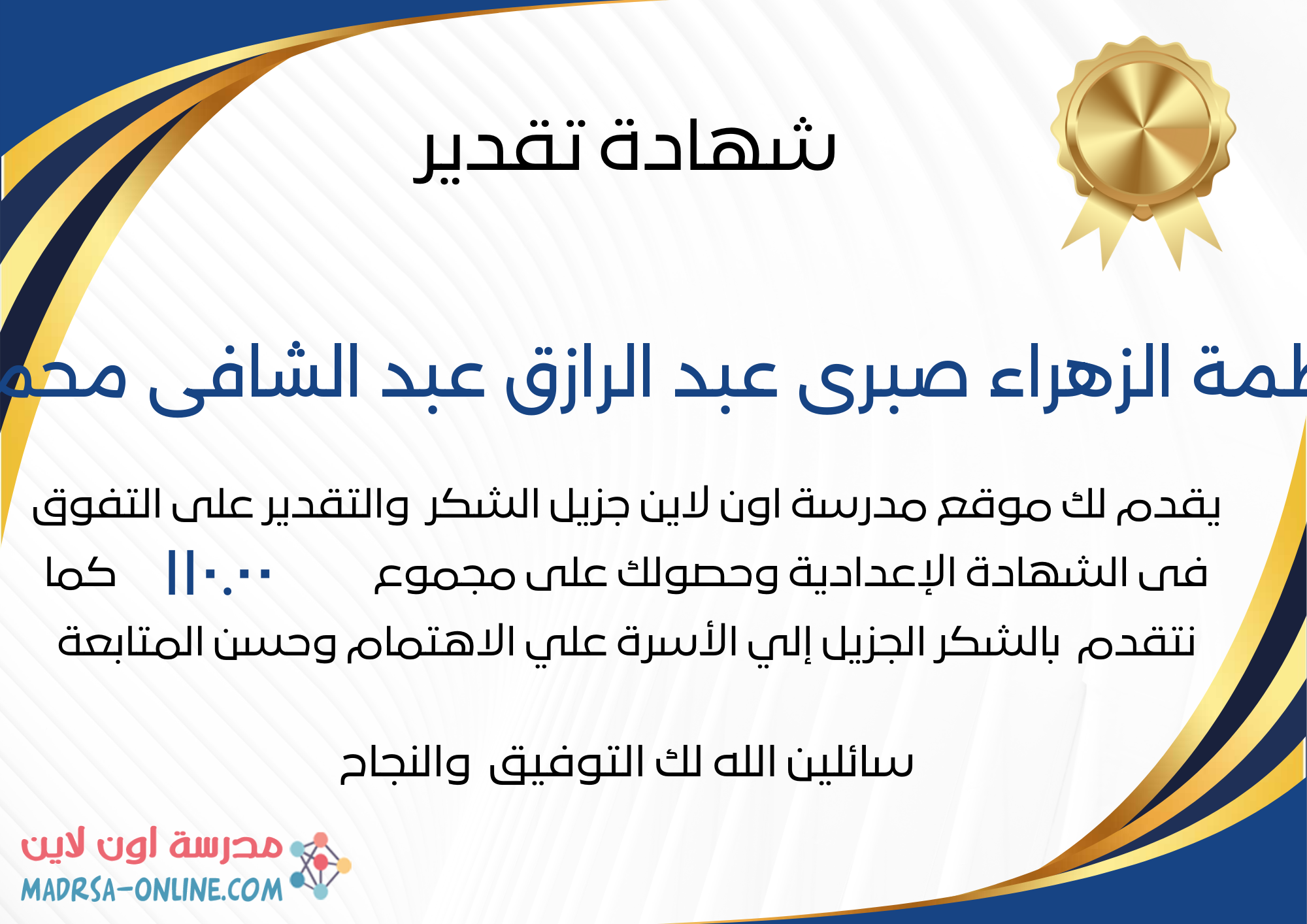 | اسم الطالب | فاطمة الزهراء صبرى عبد الرازق عبد الشافى محمود | |