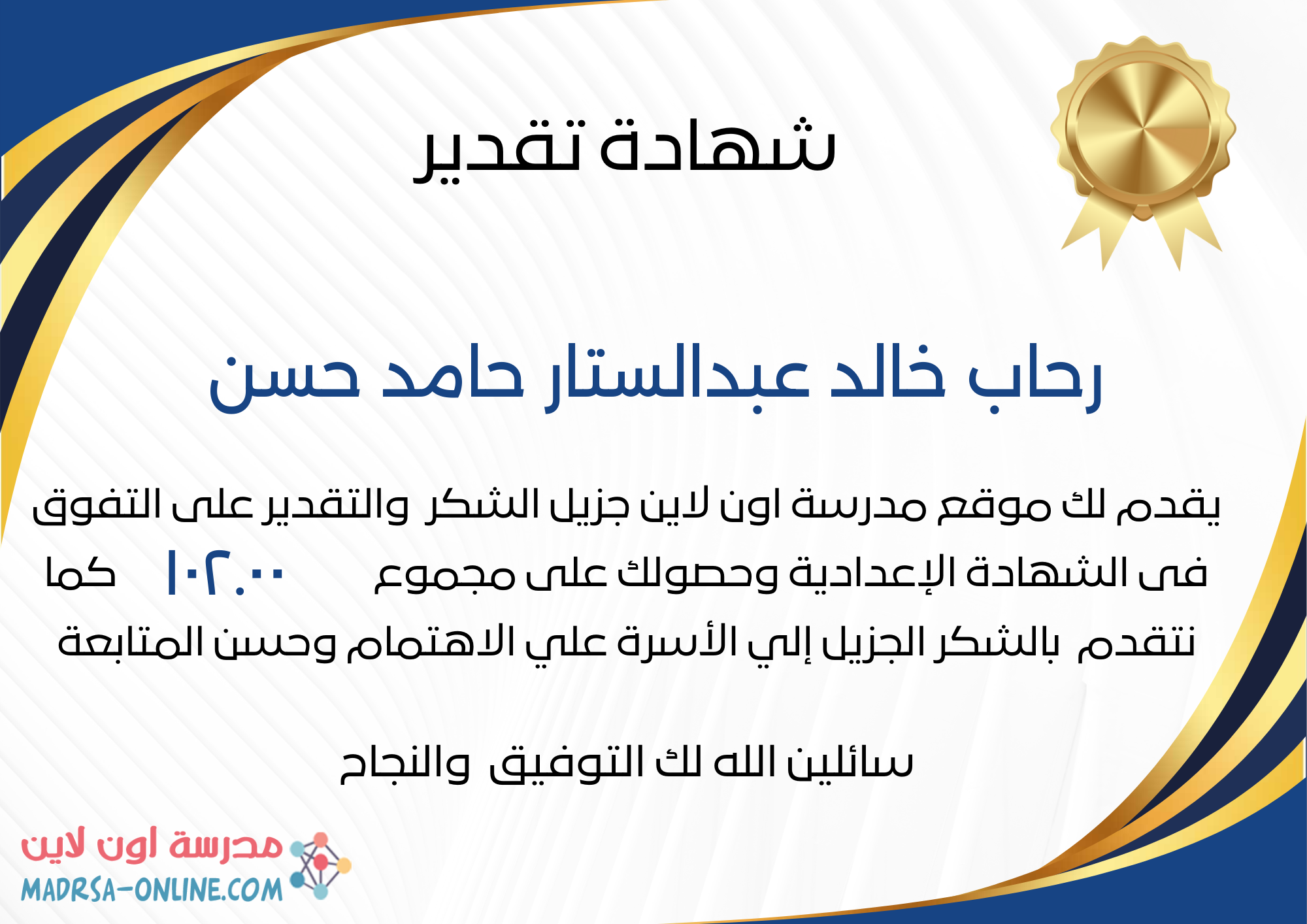 | اسم الطالب | رحاب خالد عبدالستار حامد حسن | |