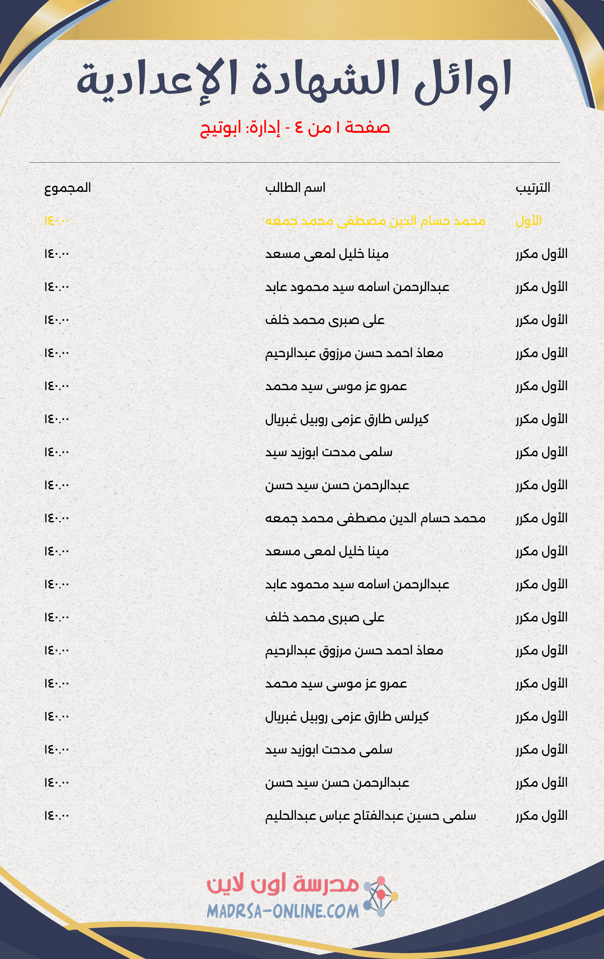 مرحبا بك في مدرسة اون لاين موقع متخصص في الإعلان عن نتيجة الشهادة الإعدادية حيث نقوم بنشر نتائج جميع المحافظات ويتم الاستعلام عنها بالاسم فقط او رقم الجلوس كما يمكن معرفة درجاتك في جميع المواد والمجموع والنسبة المئوية وترتيبك وتحميل شهادة تقدير والعديد من الخدمات الأخري المميزة من مدرسة اون لاين.