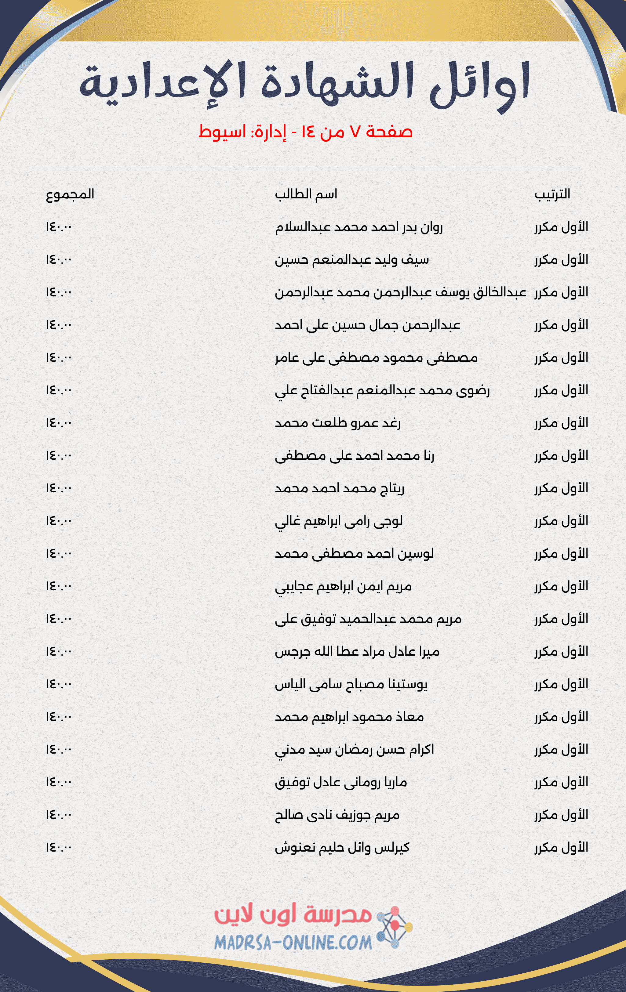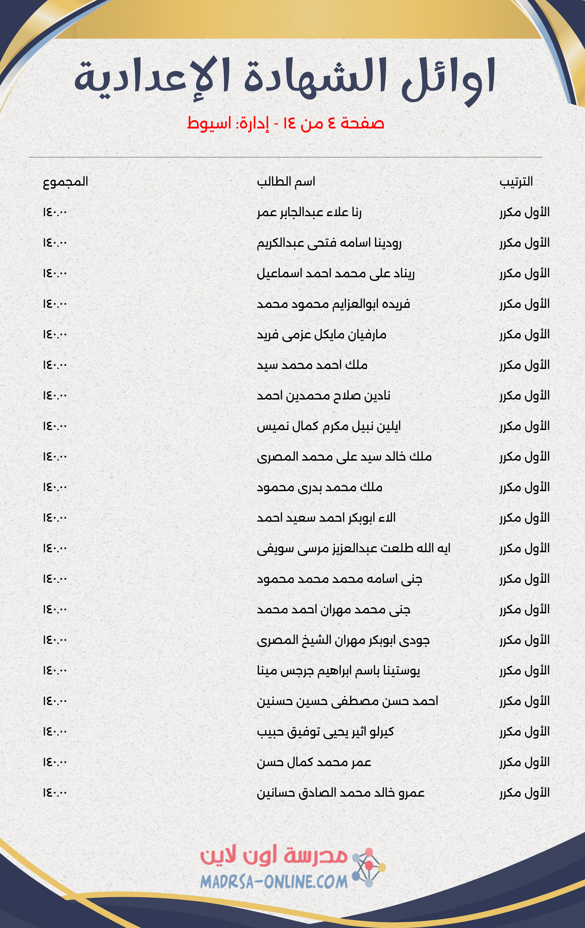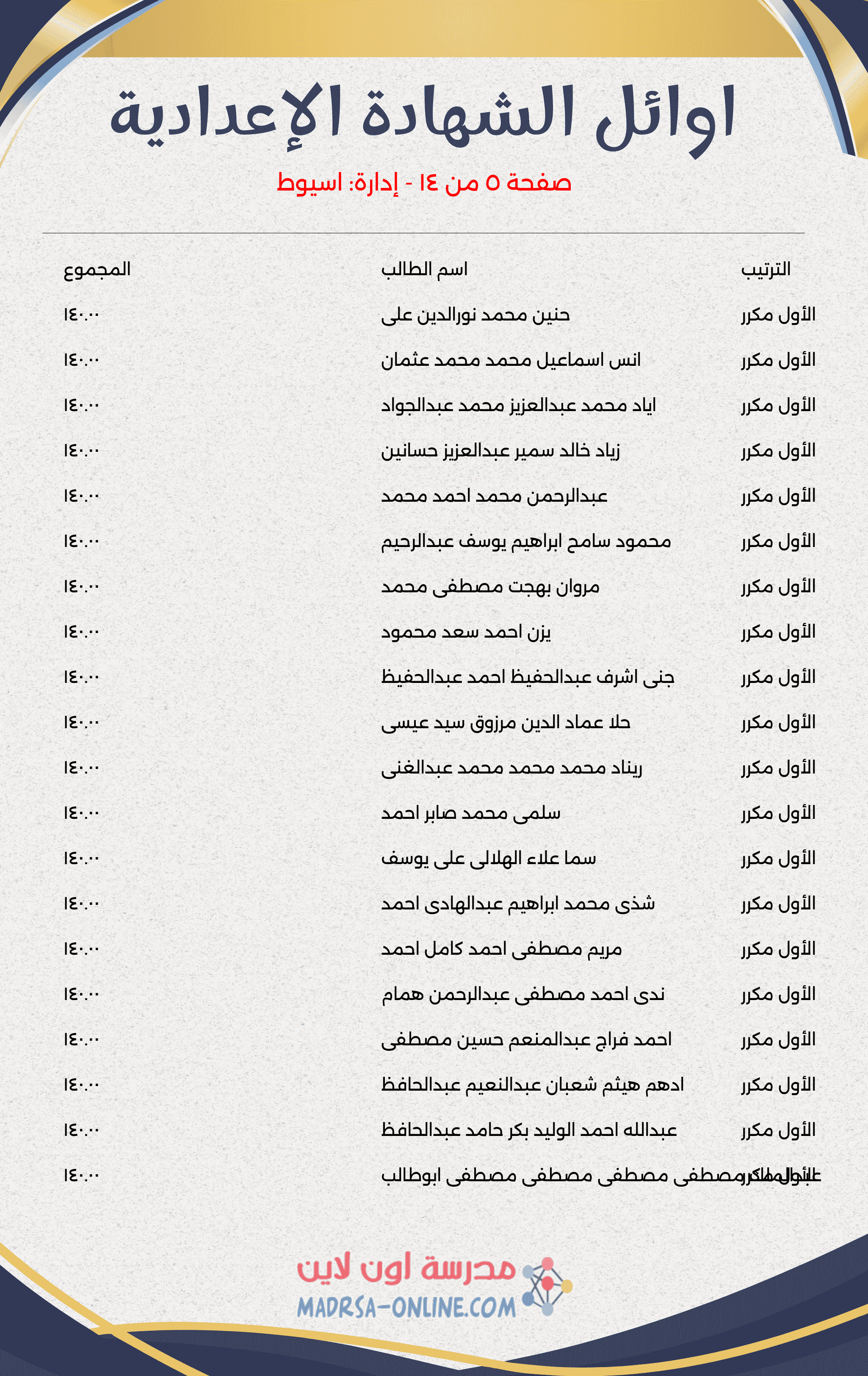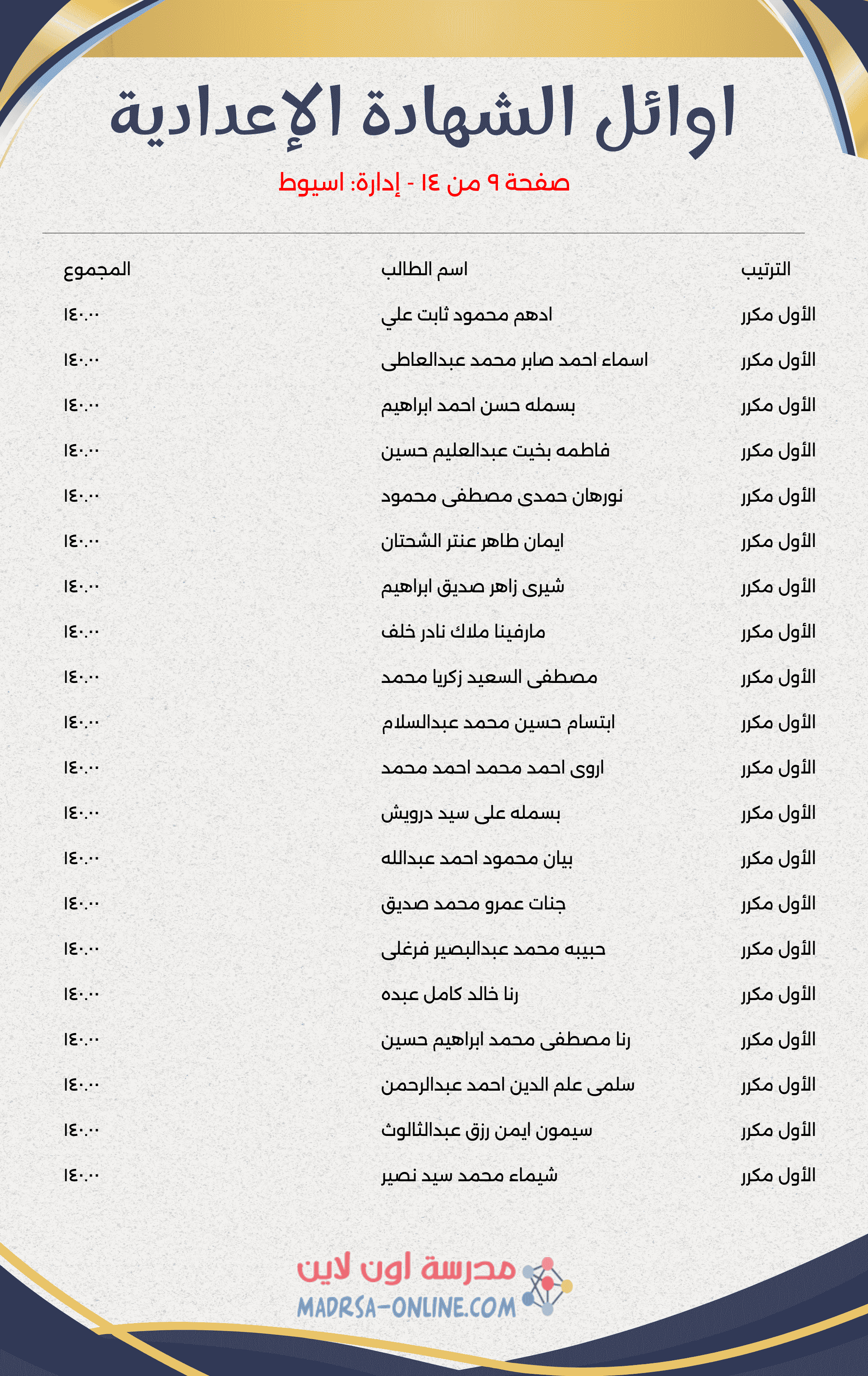 ويمكن للطلاب معرفة نتيجة الشهادة الإعدادية محافظة اسيوط 2026 عبر موقع مدرسة اون لاين المتخصص في عرض نتيجة الشهادة الإعدادية بأسيوط بالاسم فقط أو رقم الجلوس ومعرفة الدرجات والمجموع والنسبة المئوية وترتيب الطالب وتنسيق دخول الثانوي العام أو الثانوي الفني.
