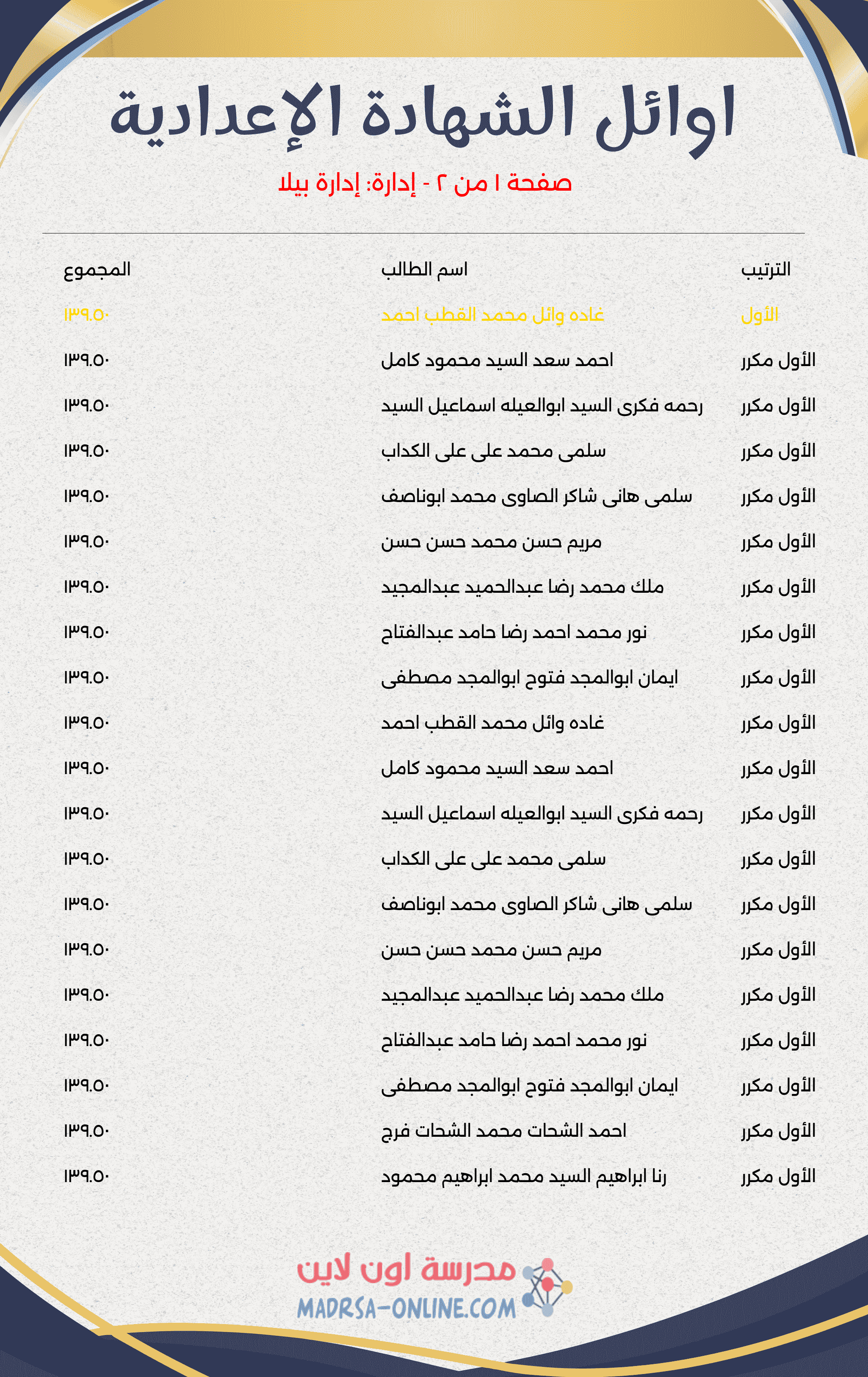 🏆 أوائل الشهادة الإعدادية 🏆