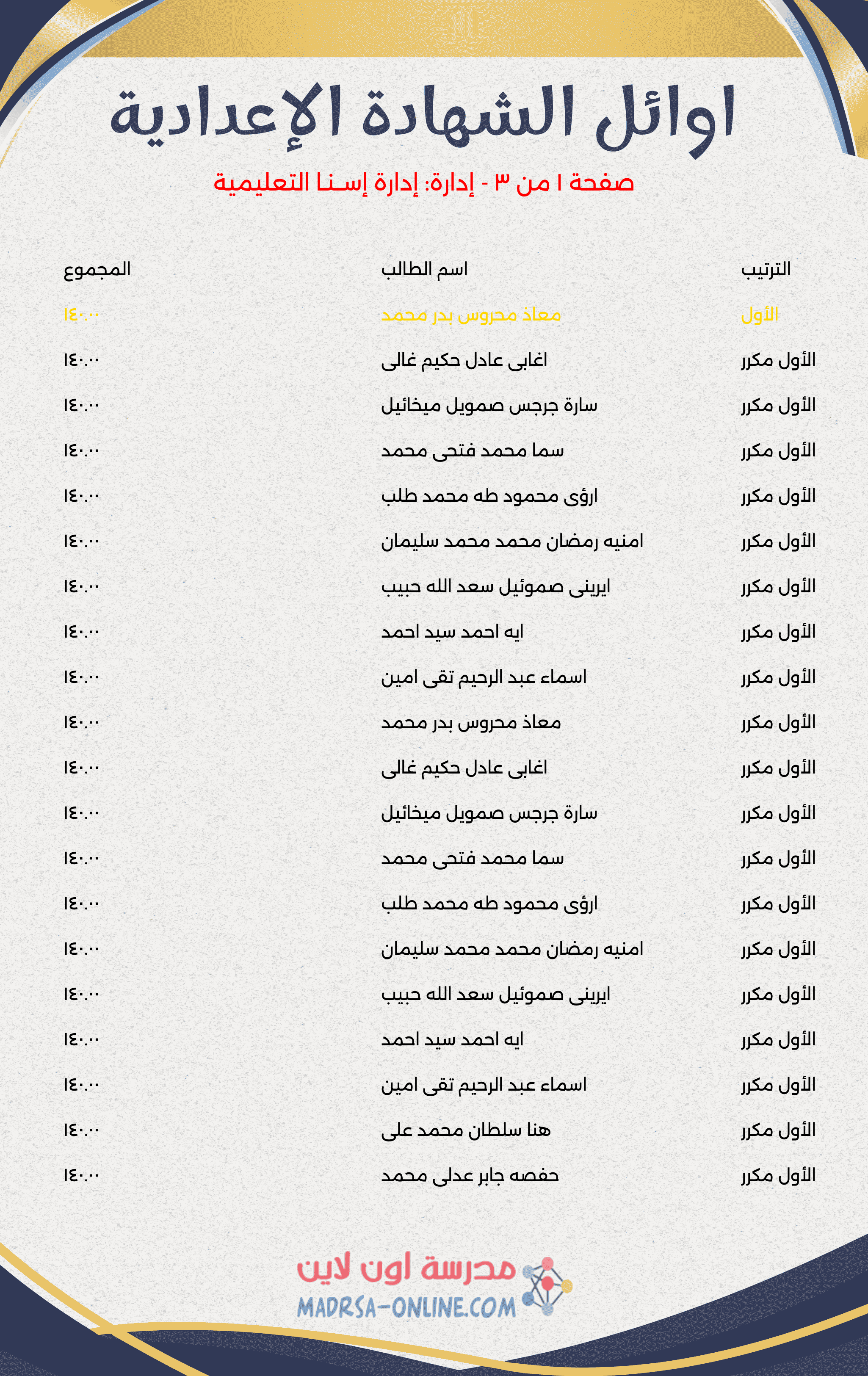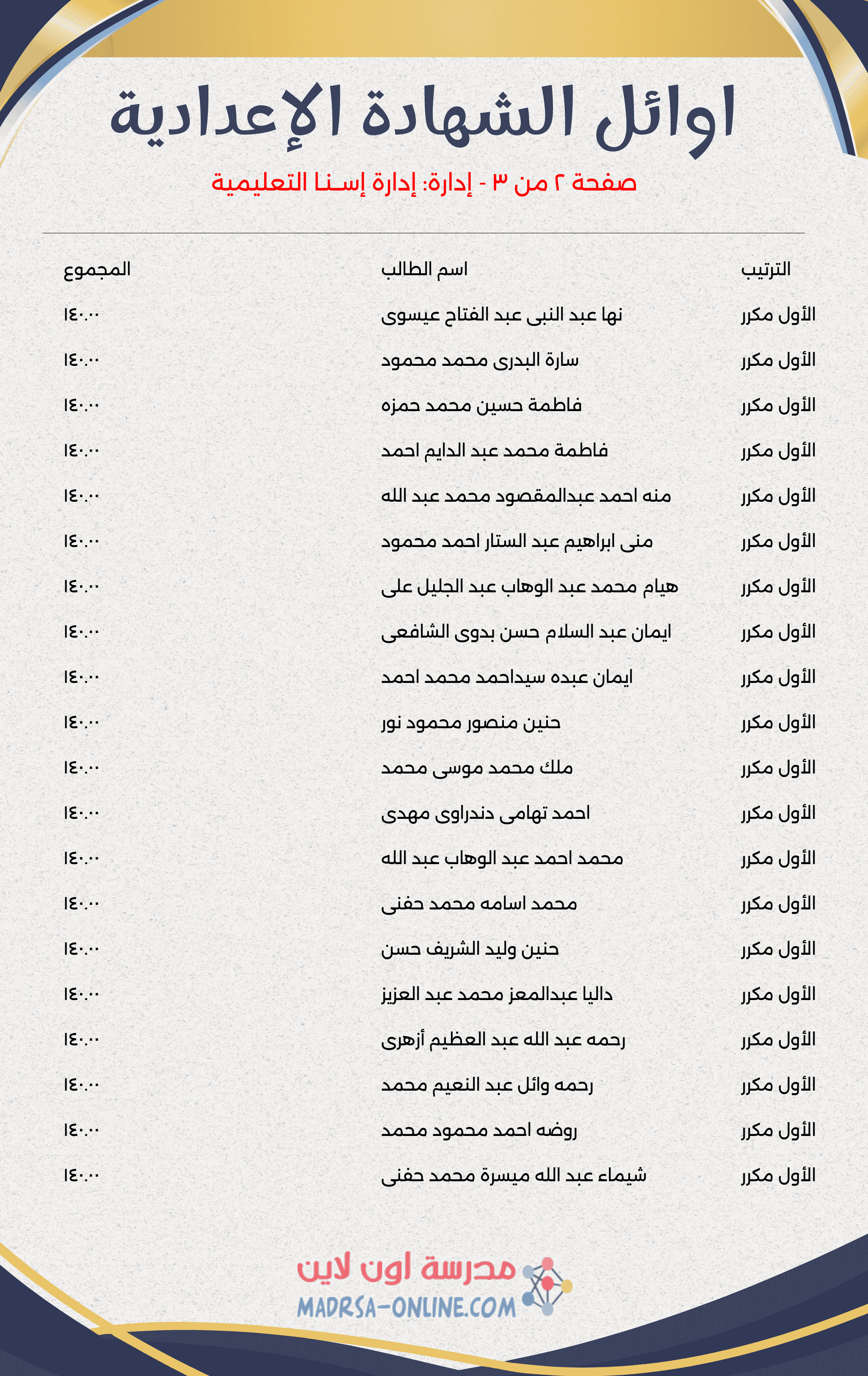 اوائل اعدادية الاقصر