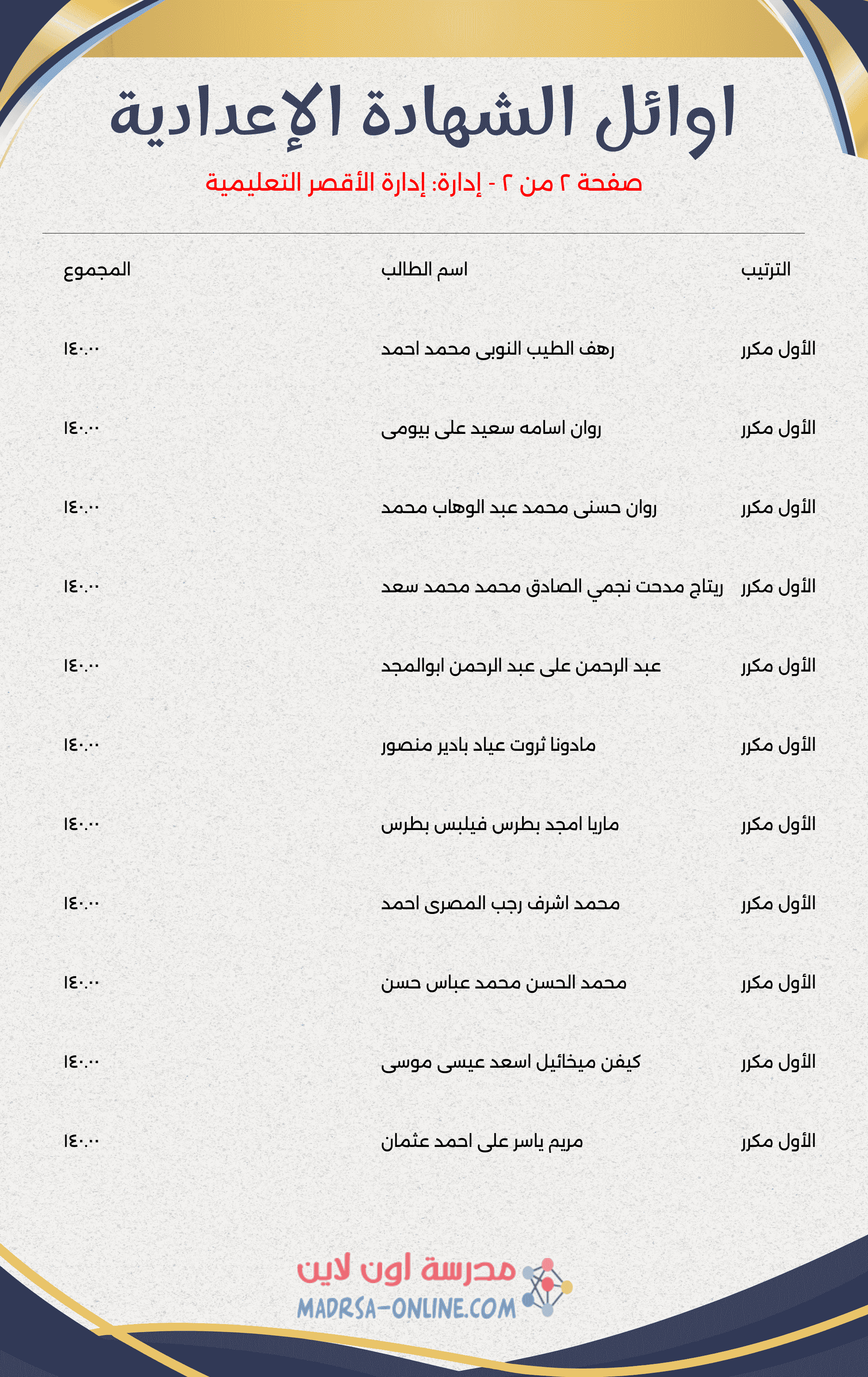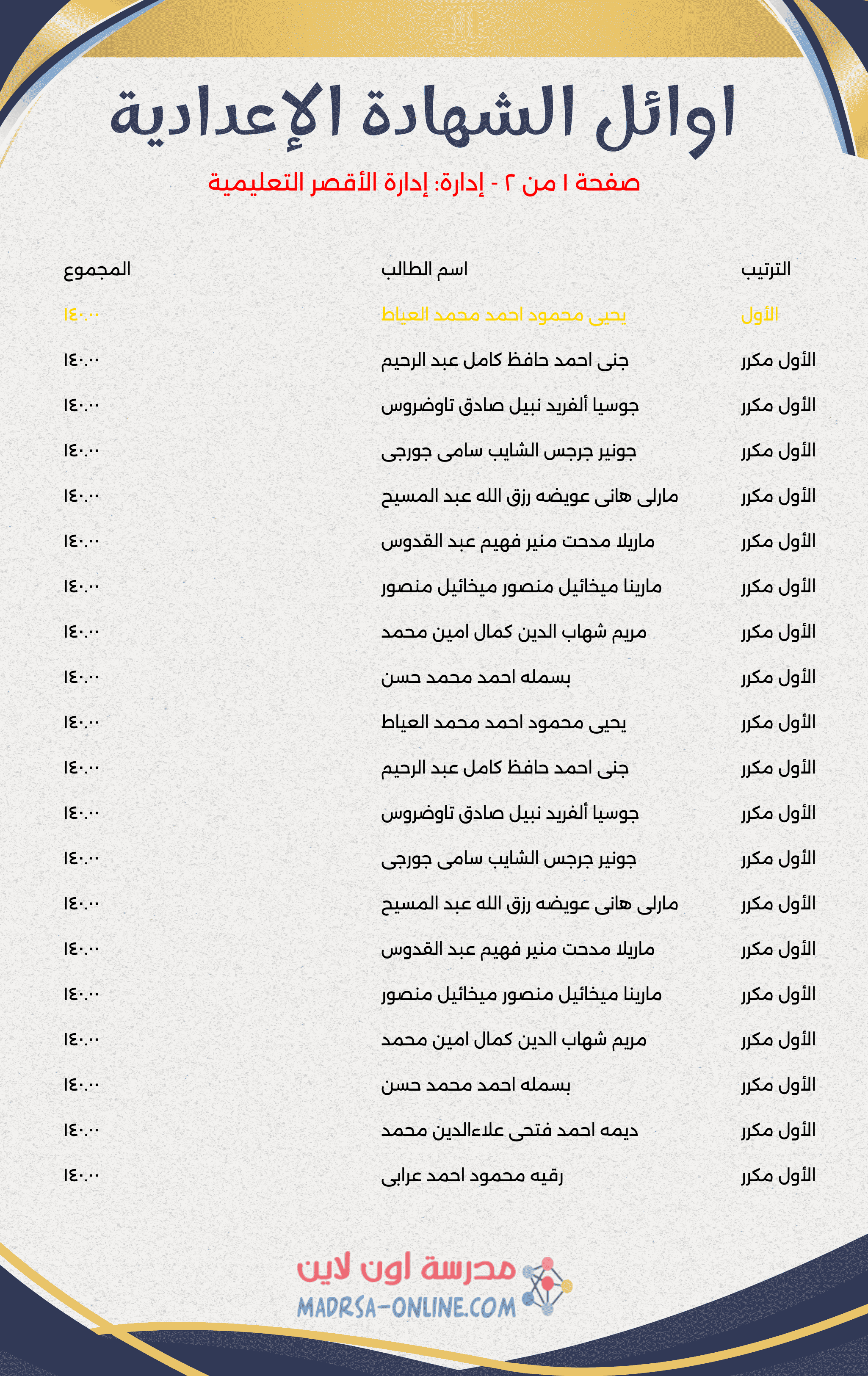أوائل الشهادة الإعدادية محافظة الأقصر