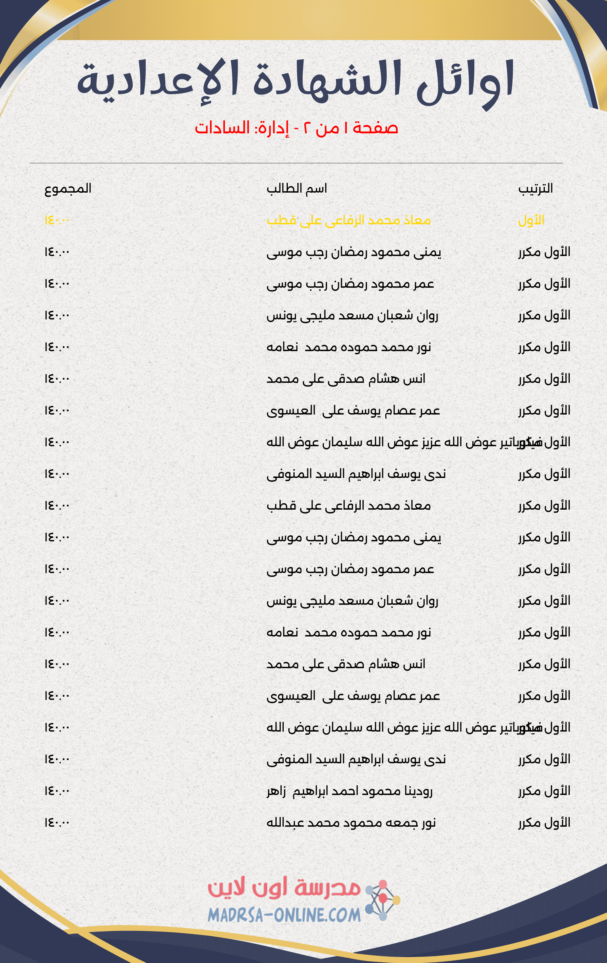 🏆 أوائل الشهادة الإعدادية 🏆