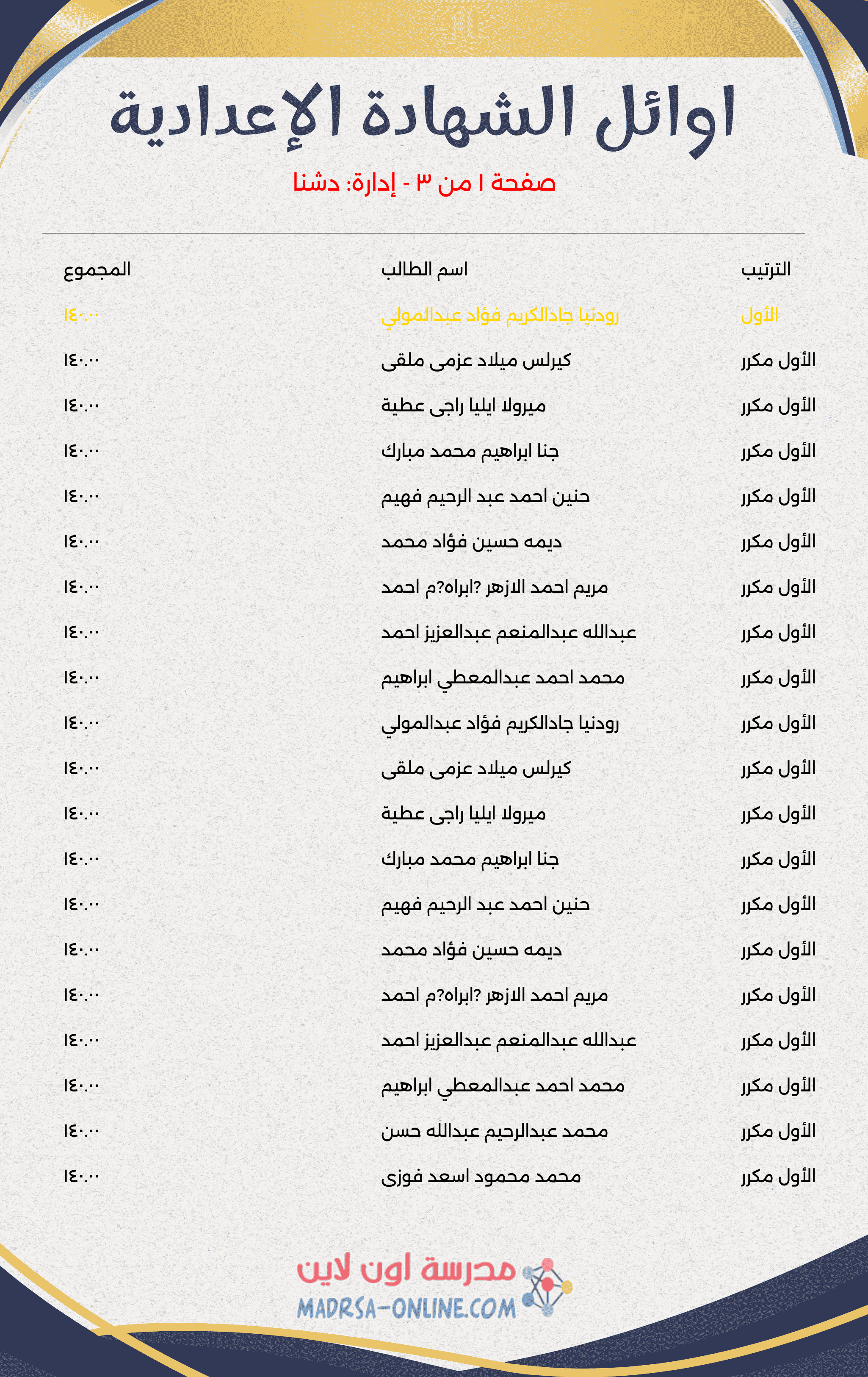 اوائل نتيجة الشهادة الإعدادية بقنا