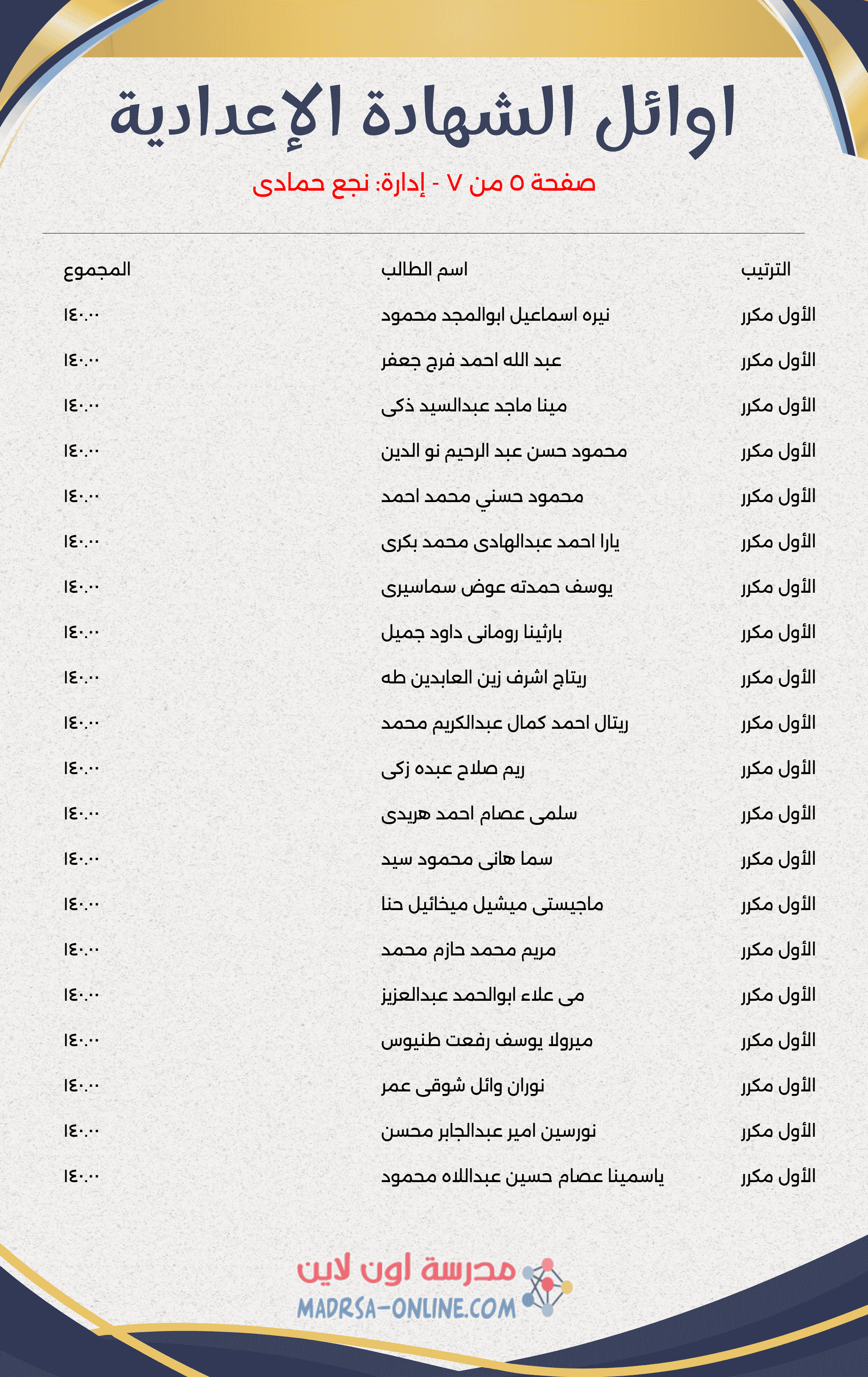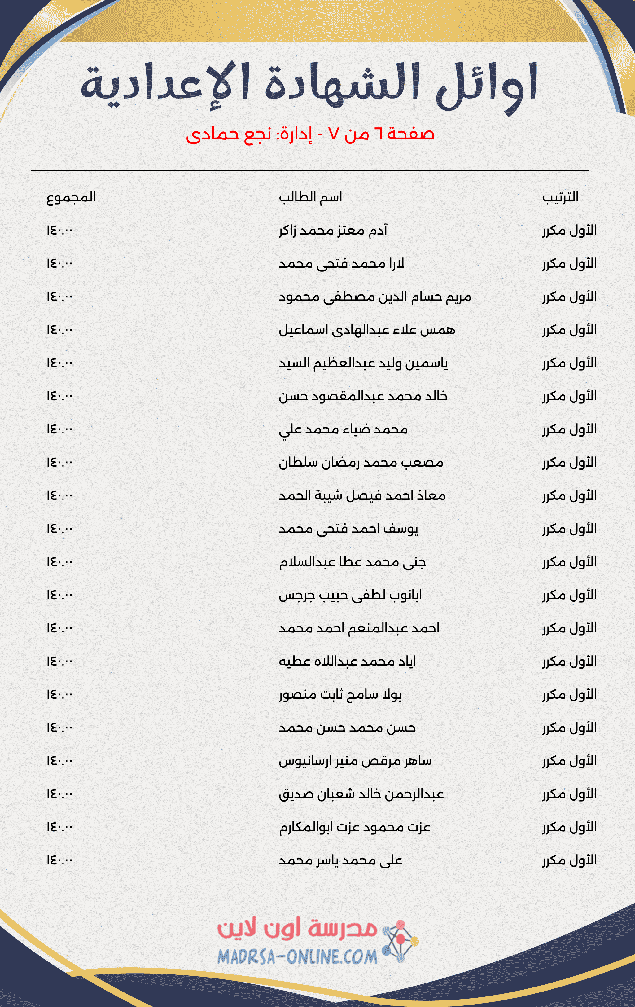 يتم الإعلان عن قائمة الأوائل بالشهادة الإعدادية محافظة قنا بعد الفصل الدراسي الثاني 2026 بعد الانتهاء من التصحيح واعتماد النتيجة